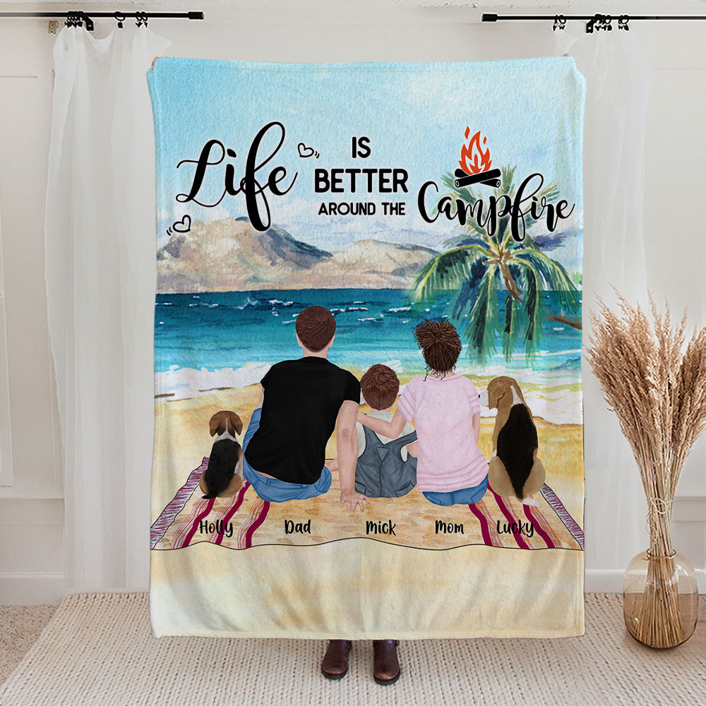 Coperta personalizzata Life Is Better Around The Campfire Regalo di Natale di compleanno amico della pelle per la coppia, la famiglia e gli amanti del