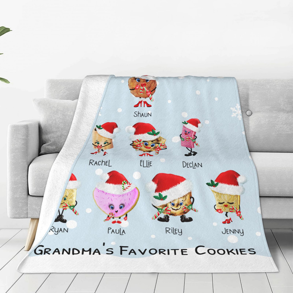 Coperta personalizzata con i biscotti preferiti della nonna con 1-8 nomi di bambini Regalo di Natale per la mamma nonna