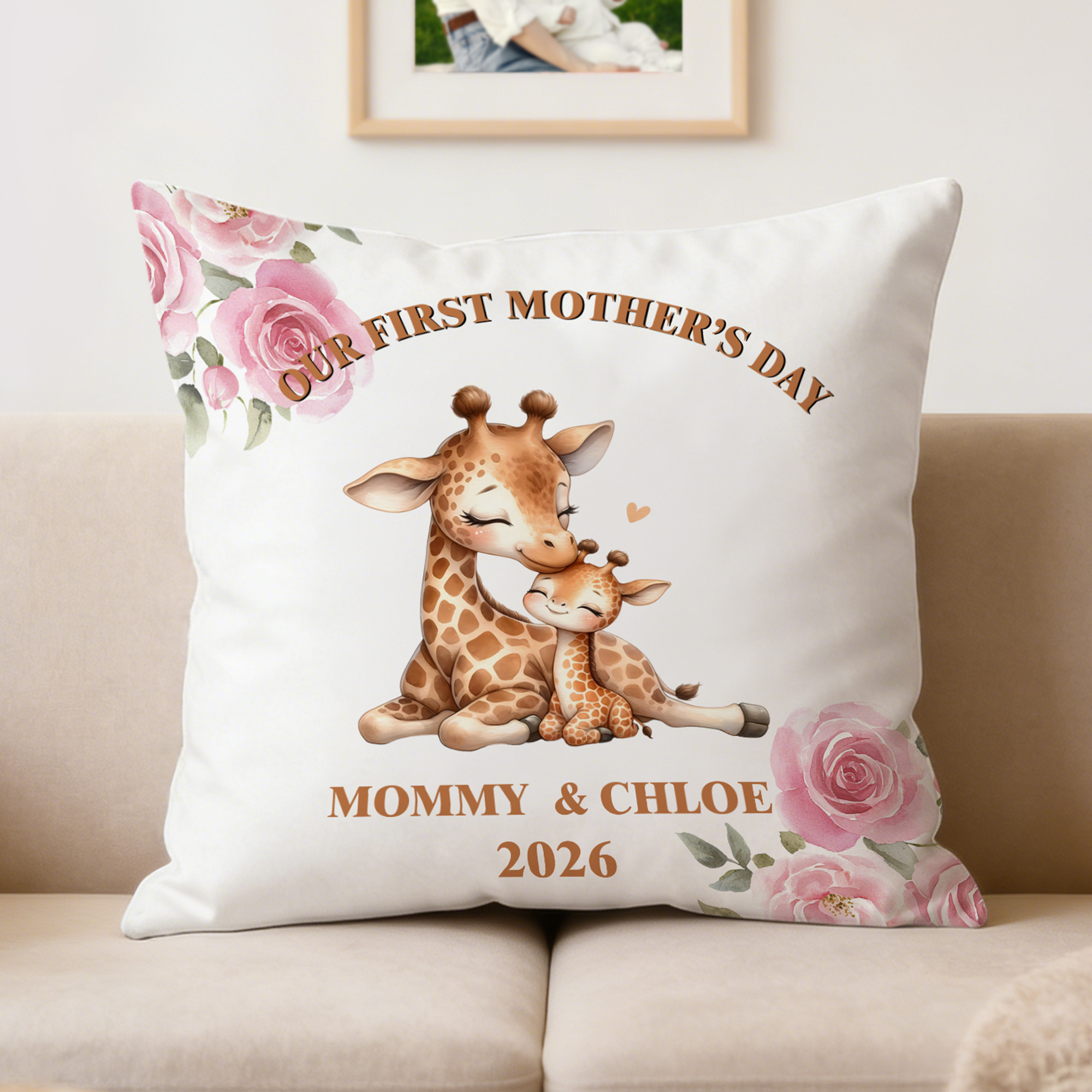 Personalizzato carino madre e bambino animale morbido cuscino copertina con nome e anno Home Decor Festa della mamma regalo di compleanno per le mamme