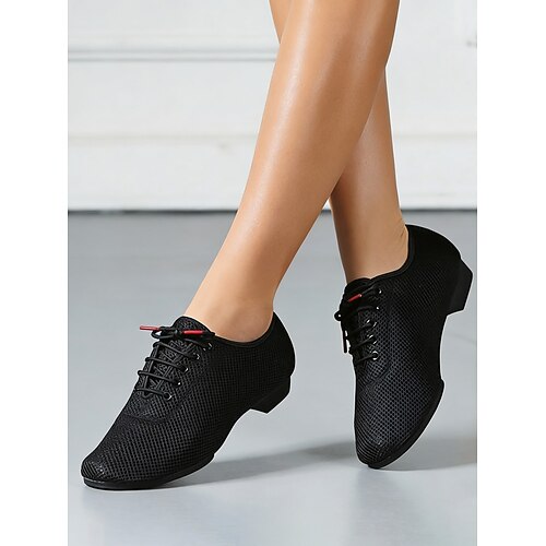 scarpe da ballo latino da donna con lacci in rete - calzature da ballo professionali traspiranti per la pratica della sala da ballo con tacco basso per artisti