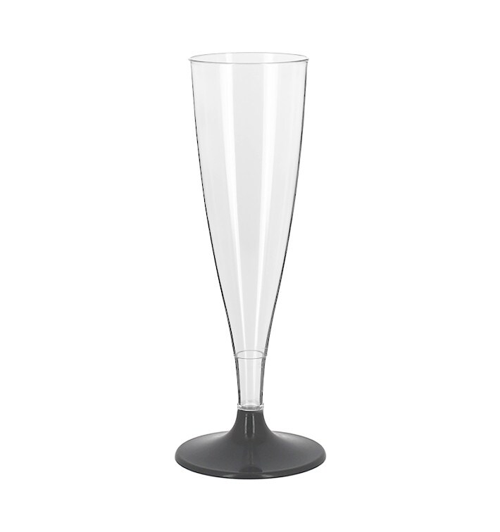 MONOUSO - Mehrweg Durable Sektglas aus PS Fuß Anthrazit 140ml 2-teilig (6 Stück)