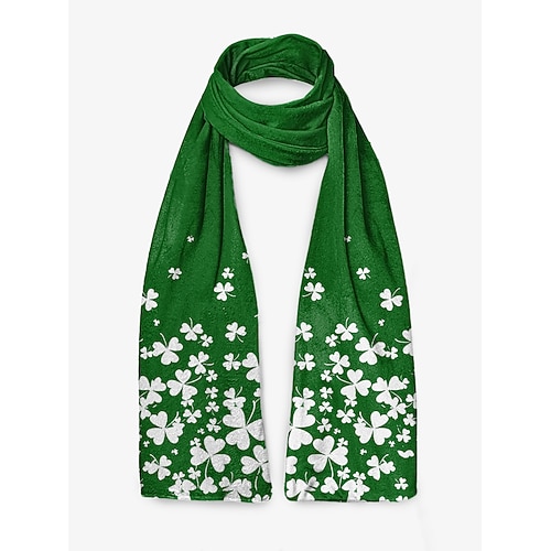 sciarpa da donna in poliestere effetto velluto per San Patrizio, con molteplici fantasie, perfetta per le celebrazioni di San Patrizio