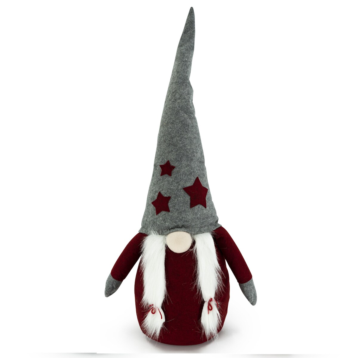 MARELIDA Wichtel ALVA Zöpfe Dekofigur graue biegbare Mütze rote Sterne Weihnachtsfigur 1m