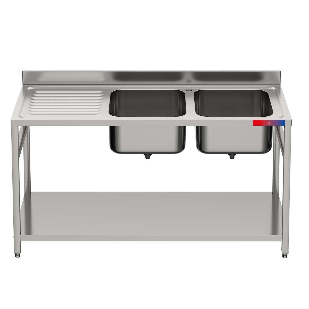 Gasfrit – Industrielles Spülbecken aus Edelstahl mit 2 Becken und 1 Abtropffläche, 1600 × 600 × 850 mm