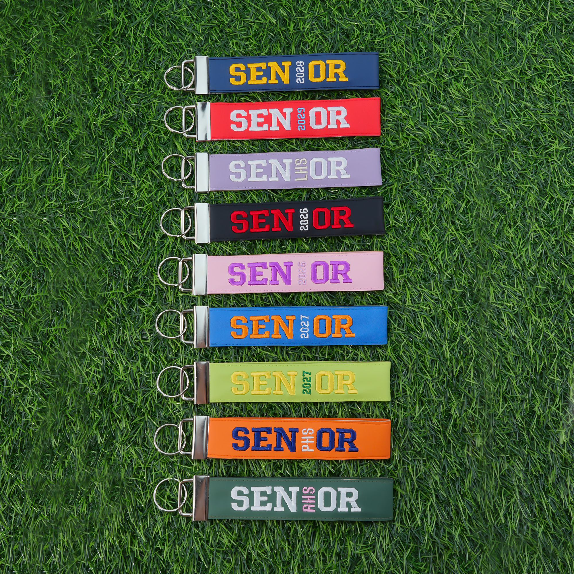 Bordado personalizado Senior llavero llavero bolsa etiqueta con nombre de la escuela o el año de graduación de vuelta a la escuela regalo de cumpleaños para los graduados