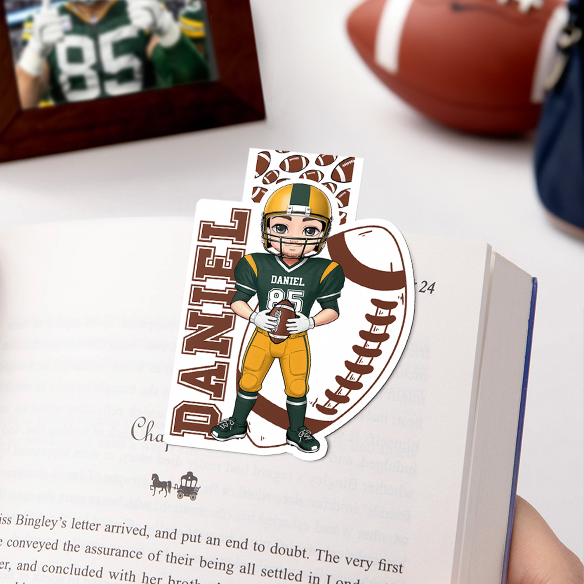 Personalizado Fútbol Cartoon Character Irregular Marcapáginas magnético Clip con nombre y número Cumpleaños Regalo de Navidad para los amantes del fútbol Los ratones de biblioteca