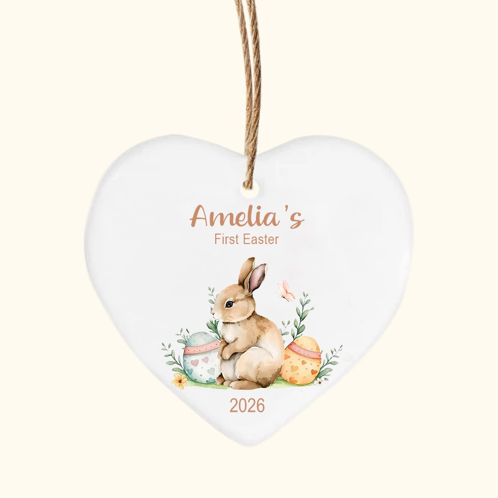 Etiqueta personalizada con el nombre de la primera Pascua en forma de corazón cesta de cerámica con huevos de Pascua conejito de Pascua regalo conmemorativo para los niños