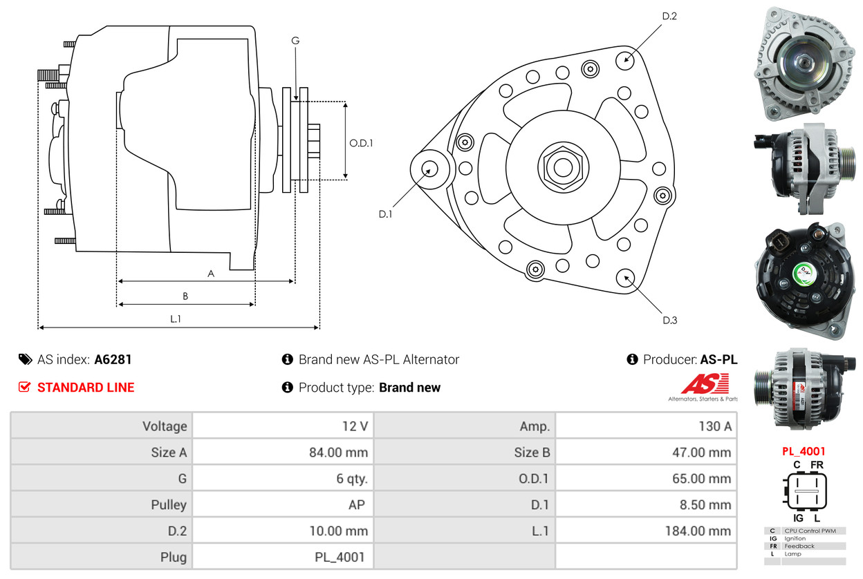AS-PL Generator A6281 12V 130A für ACURA HONDA 31100-PGK-A02 31100-PGK-A03 31100PGKA03RM