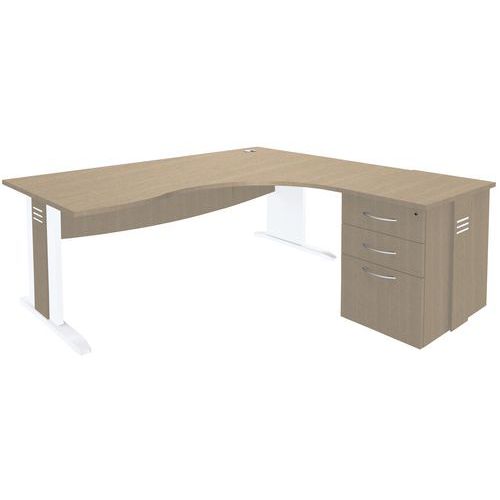 Compact Asym. Quatuor 160 Pied L Bois +cais.hb Ret.droit.chêne/blanc - Manutan Expert