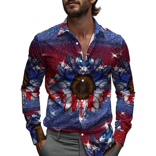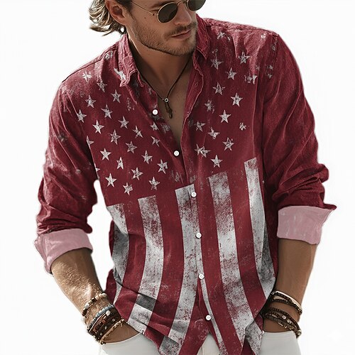 Giornata dell'indipendenza Per uomo Bandiera degli Stati Uniti Patriottico 4 luglio Camicia Camicia con colletto alla coreana Camicia casual Manica Lunga Casual Ferie Estate Primavera Collo alla