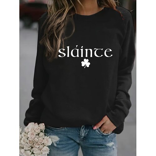 Felpa da donna per il Giorno di San Patrizio con grafica trifoglio casual a maniche lunghe colletto rotondo tops regolari casual street nera verde grigia primavera autunno