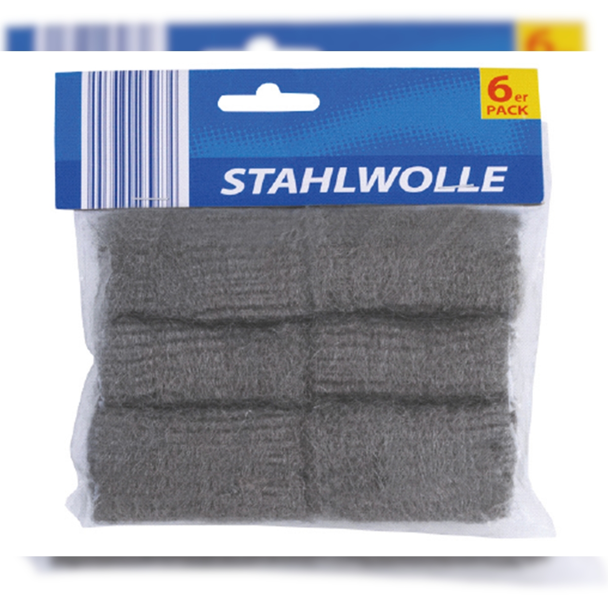 Stahlwolle 6er Pack Reinigungspads Metallwolle Scheuerwolle Topfreiniger Rostentferner Polierwolle für Haushalt Werkstatt Küche Grill