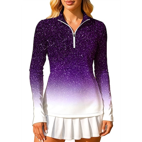 Per donna Sfumatura Felpa Polo Top Maglietta Maglietta sportiva Manica Lunga Stampato Zip a un quarto Pullover UPF50 Resistente ai Raggi UV Protezione UV Elastico Traspirante Pallavolo Tennis Golf
