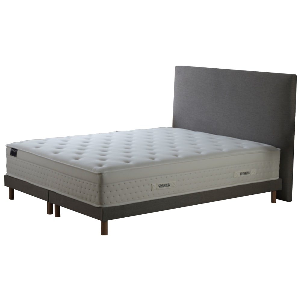 Ensemble ressort mémoire de forme sommier tete de lit gris 180x200