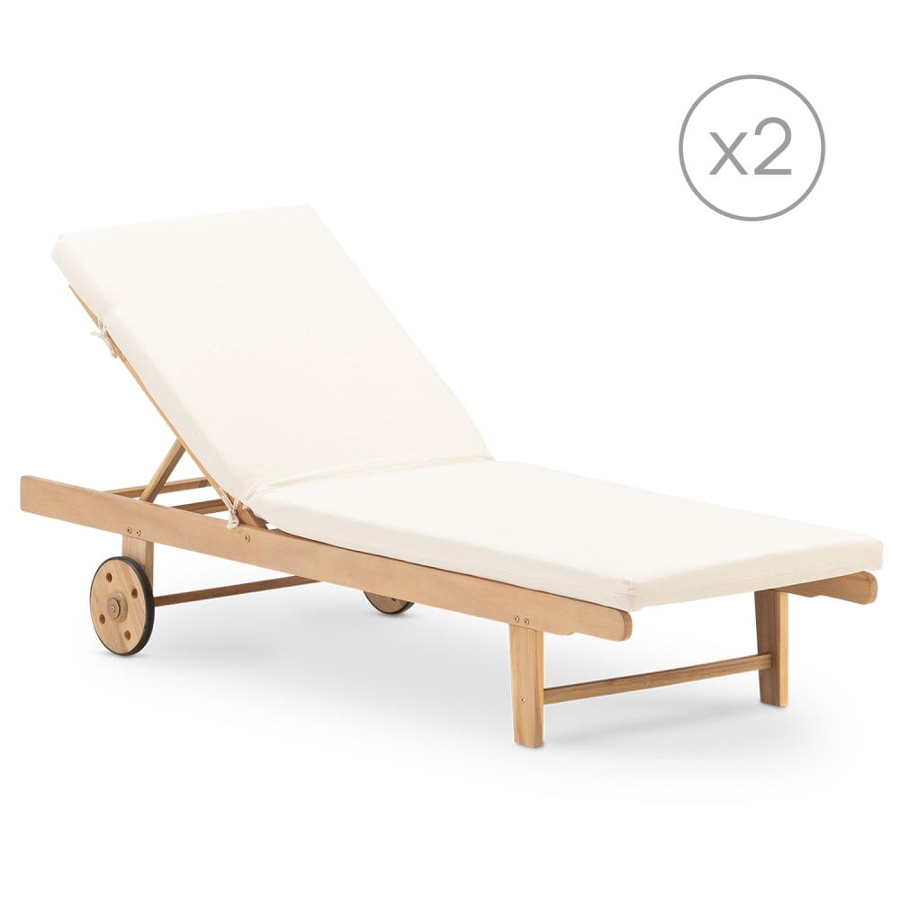 Set di 2 poltrone lounge in legno con ruote con cuscino incluso