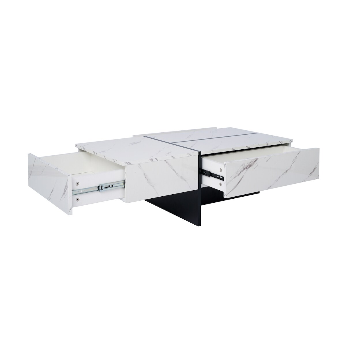 OKWISH Moderner Couchtisch 100x50x34 cm mit LED Beleuchtung App Steuerung, Marmoroptik Hochglanz Weiß, 3 Schubladen, Wohnzimmer Tisch
