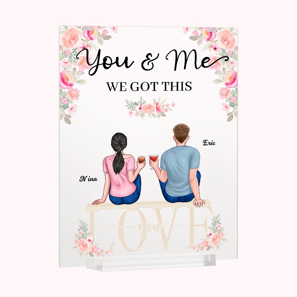 Coppia personalizzata che si siede su una sedia, cheers flower placca acrilica Girlfriend Gifts Desk Ornament