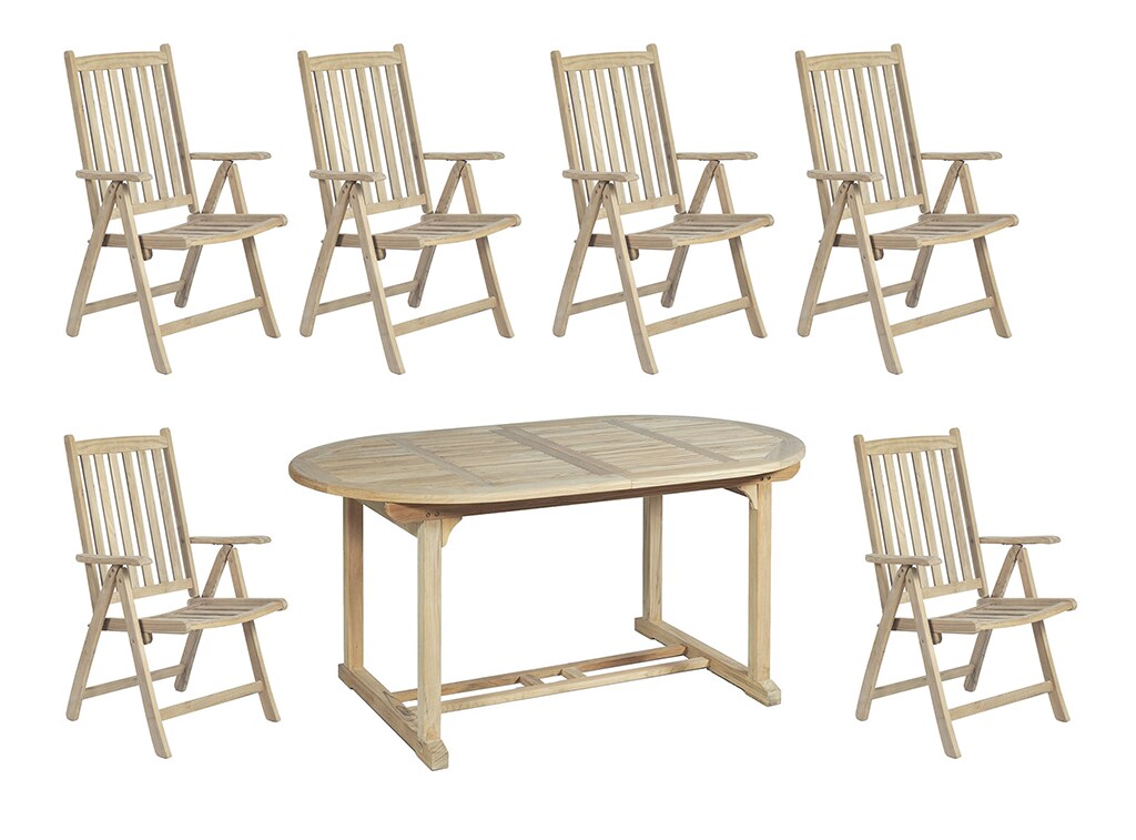 7-teilige Tischgruppe Garten Gruppe Sitzgruppe Ausziehtisch Hochlehner Teak