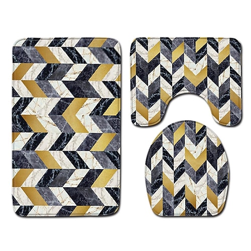 set di 3 tappetini da bagno antiscivolo, tappeto sagomato a forma di Uamp; copriwater, tappetino da bagno con struttura in marmo, antiscivoloamp; morbido tappeto in poliestere assorbente