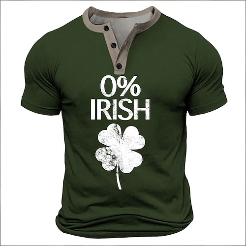 Per uomo San Patrizio Quadrifoglio Divertente 0% Irish Maglietta Maglia Henley Manica Corta Designer Retrò Vintage Casuale Quotidiano Streetwear Estate Primavera Esercito verde Verde lime Henley