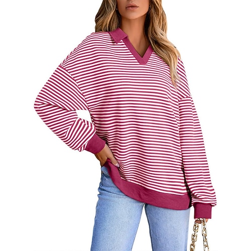 Per donna Maglietta A righe Moda Elegante Classico Manica Lunga Scollo a V Top Regolari Quotidiano Uscire Weekend Blu Nero Verde chiaro Rosso Verde Primavera Autunno