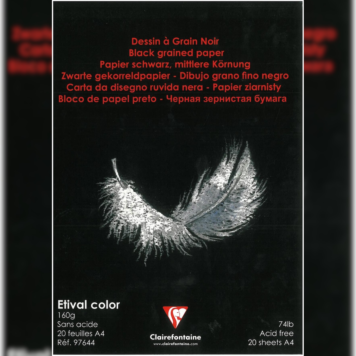 Clairefontaine 5x Etival Color, schwarzes Zeichenpapier A4, Block mit 20 Blatt 160g - Schwarz 97644C