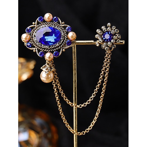 spilla vintage con catena a forma di gemma blu – elegante spilla a doppia catena per uomo e donna, accessorio per camicia e abito in stile gotico vittoriano, gioielli formali per matrimonio e festa