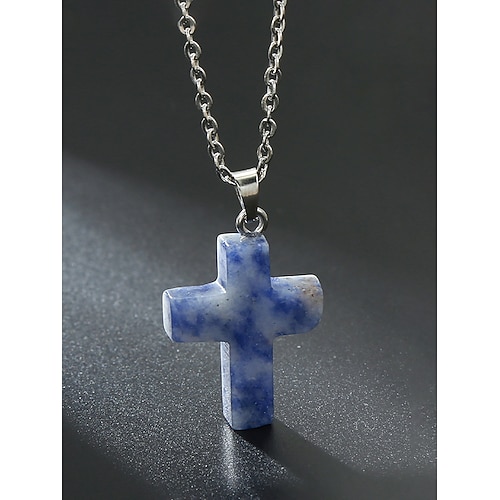 Collana con ciondolo a croce in pietra naturale natalizia da uomo, disponibile in più colori, design elegante e alla moda, perfetta come regalo per le feste
