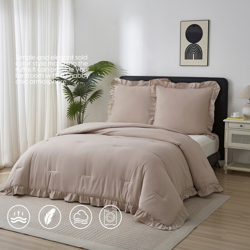 MEEALLHOME Parure de lit vintage à volants marron - 1 housse 240 x 220 cm et 2 taies 65 x 65 cm