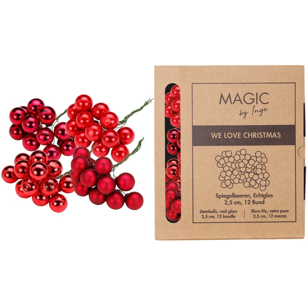144 Glaskugeln am Draht 2,5cm Weihnachtskugeln Spiegelbeeren Basteln Ruby Red