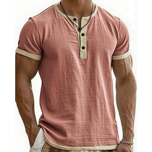Per uomo Maglietta Maglia Henley Camicia a Maniche Corte Manica Corta Henley Estate Primavera Blocco di colori Moda Designer Essenziale Patchwork Vacanza Streetwear Uscire Nero Rosa Blu Maglietta Top