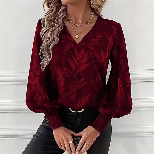 Per donna Camicia Grafico Vintage Elegante Manica Lunga Scollo a V Blu Rosa Grigio Estate Primavera