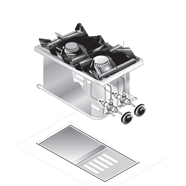 Gastro-Inox Gastro Inox Einbau-Gasherd mit 2 Brenner aus Edelstahl AISI304 400x600x250mm