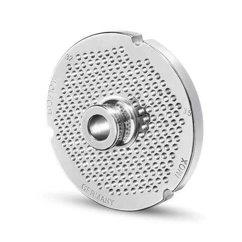 WOLFCUT Fleischwolfscheibe mit Nabe und 3 Nuten INOX-Stahl Größe 32 - 3,5 mm Bohrung kompatibel mit BIZERBA FW-N32 / ALEXANDERWERK 32 / OMEGA TH32