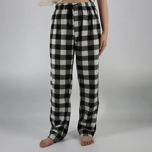 Per donna Pigiami Casual Lunghezza intera Vita media Griglia / Plaid Elastico in vita Calore Termico Confortevole Micro-elastico Casa Rosa Rosso Blu Grigio Autunno Inverno Vestibilità regolare
