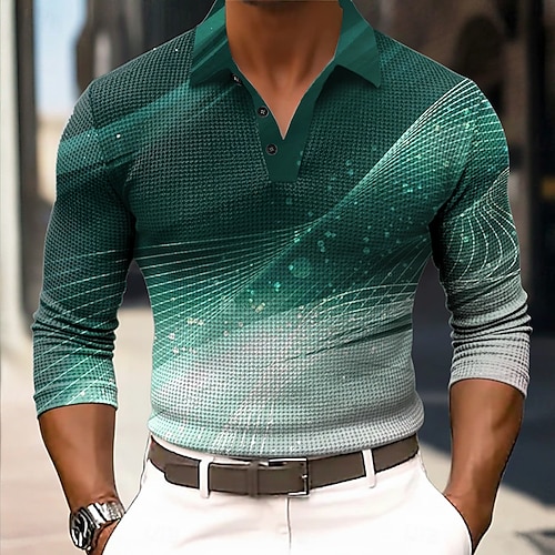 Per uomo Geometrico Magliette Polo a Nido d'Ape Polo da rugby Testurizzato Manica Lunga Magliette polo Bavero Abbigliamento Sportivo Casual Scuola Athleisure Abbigliamento quotidiano Stampa 3D