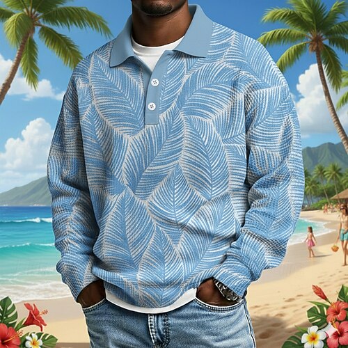 Per uomo Foglia Magliette Polo a Nido d'Ape Manica Lunga Magliette polo Bavero Resort Athleisure Camicia hawaiana Abbigliamento quotidiano Stampa 3D Primavera Autunno Inverno Blu Giallo Rosa