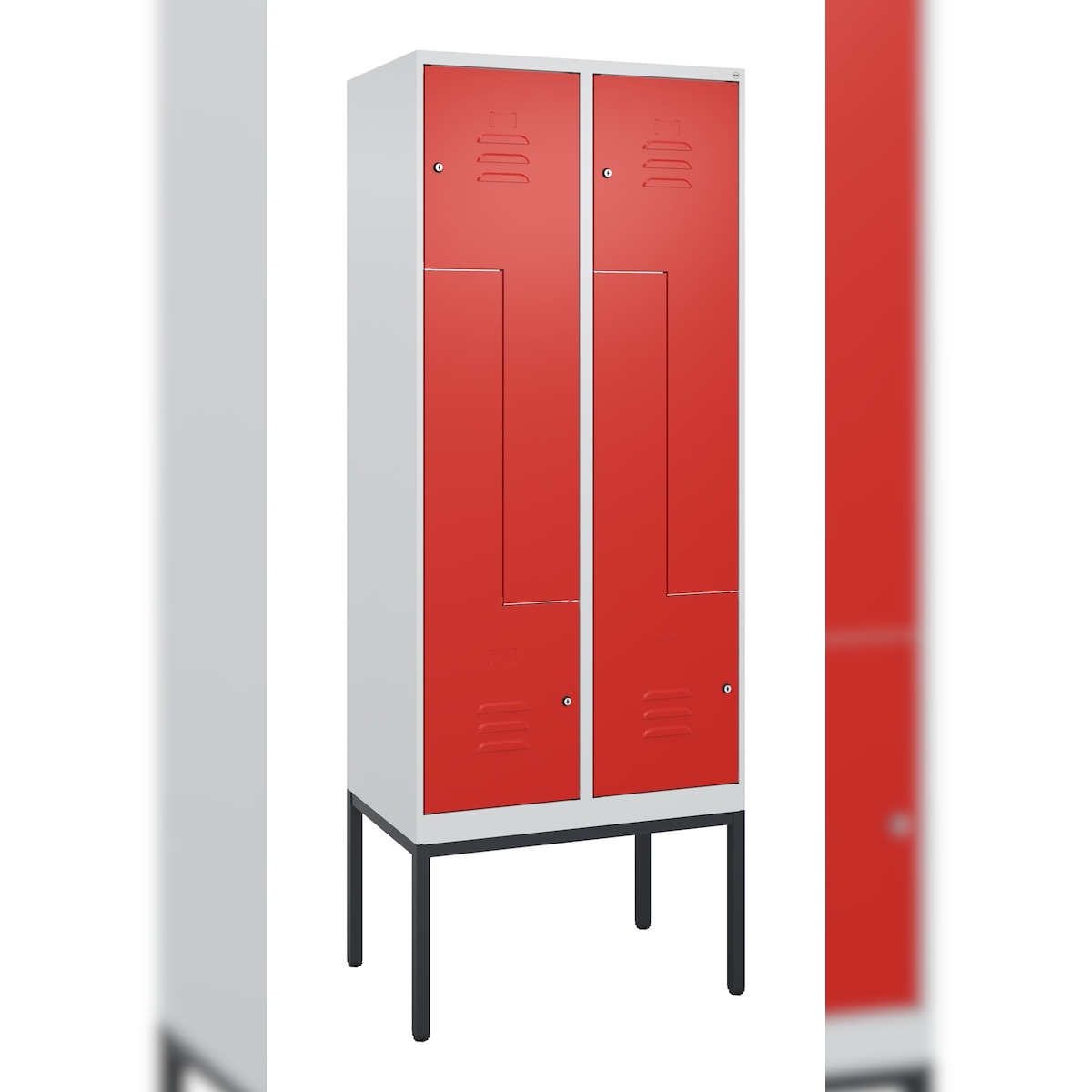 C+P Z-Spind Classic PLUS, Füßen, 4 Abteile, HxBxT 195x80x50cm, Sicherheitsdrehriegel, Hellgrau/Rot von PROREGAL