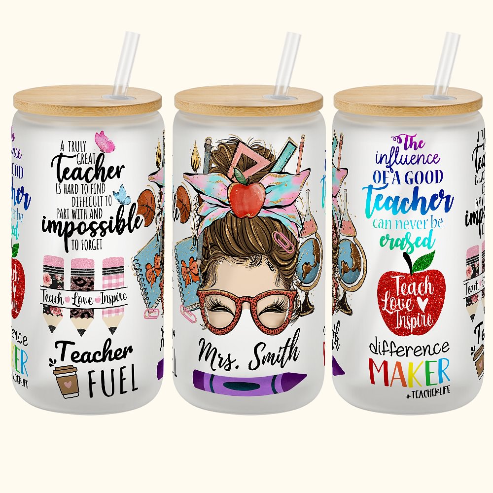 Personalizzato divertente Cartoon Donne Matita Mela Tema Insegnante 20 oz Bicchiere di vetro smerigliato con nome Apprezzamento Regalo di ritorno a sc
