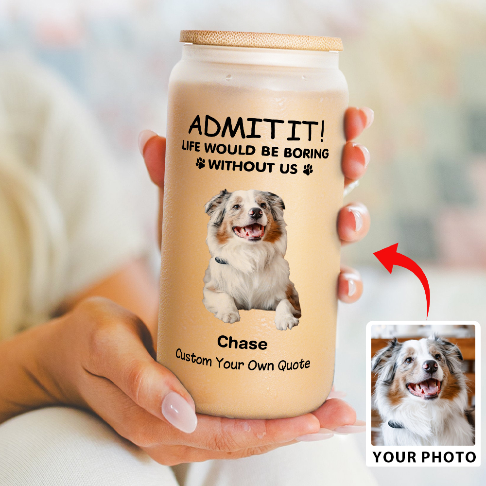 Tazza di vetro da 20 oz con 1-4 foto di animali domestici, coperchio in bambù e cannuccia Regalo di compleanno per gli amanti degli animali domestici.