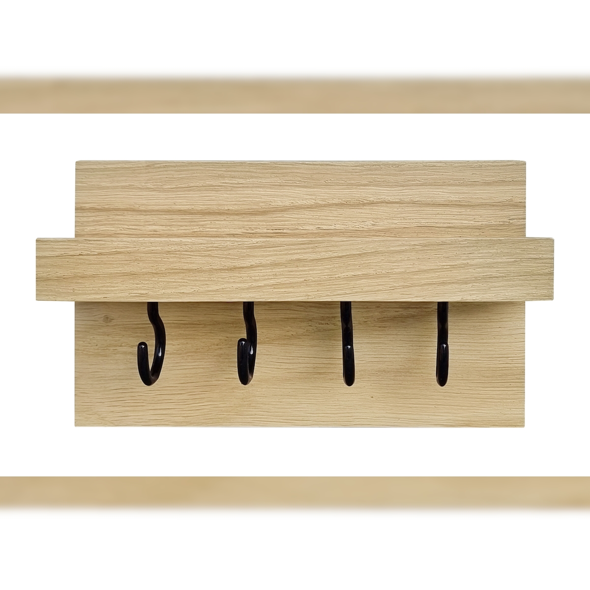 Erst-Holz Wandregal mit Haken Schlüsselbrett mit Ablage Eiche lackiert 20 u 30 cm V-40.12-11