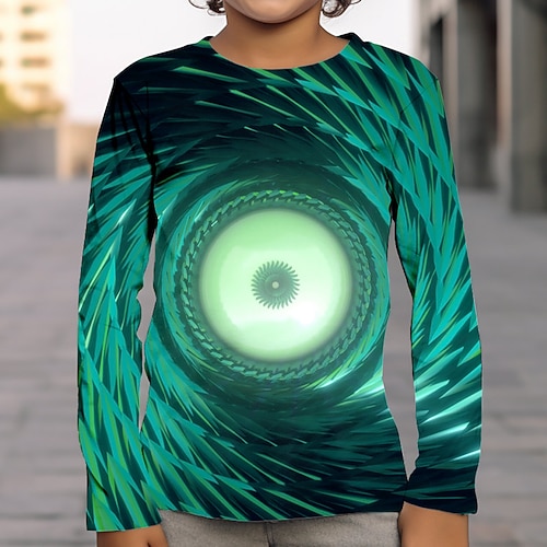 Da ragazzo 3D Fantasia geometrica T-shirt Camicie Manica lunga Stampa 3D Primavera Autunno Sportivo Di tendenza Streetwear Bambino 3-12 anni Girocollo Esterno Informale Giornaliero Standard