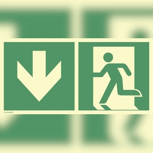 Notausgang links Pfeil unten, Kombi, ISO 7010, PVC-U selbstkl.,160-mcd,297x148mm