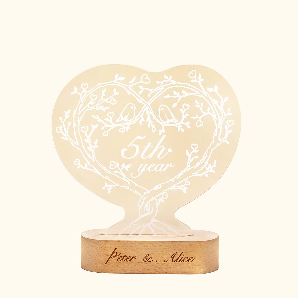 Heart Shaped LED Night Lamp with Wooden Base Anniversary Gift