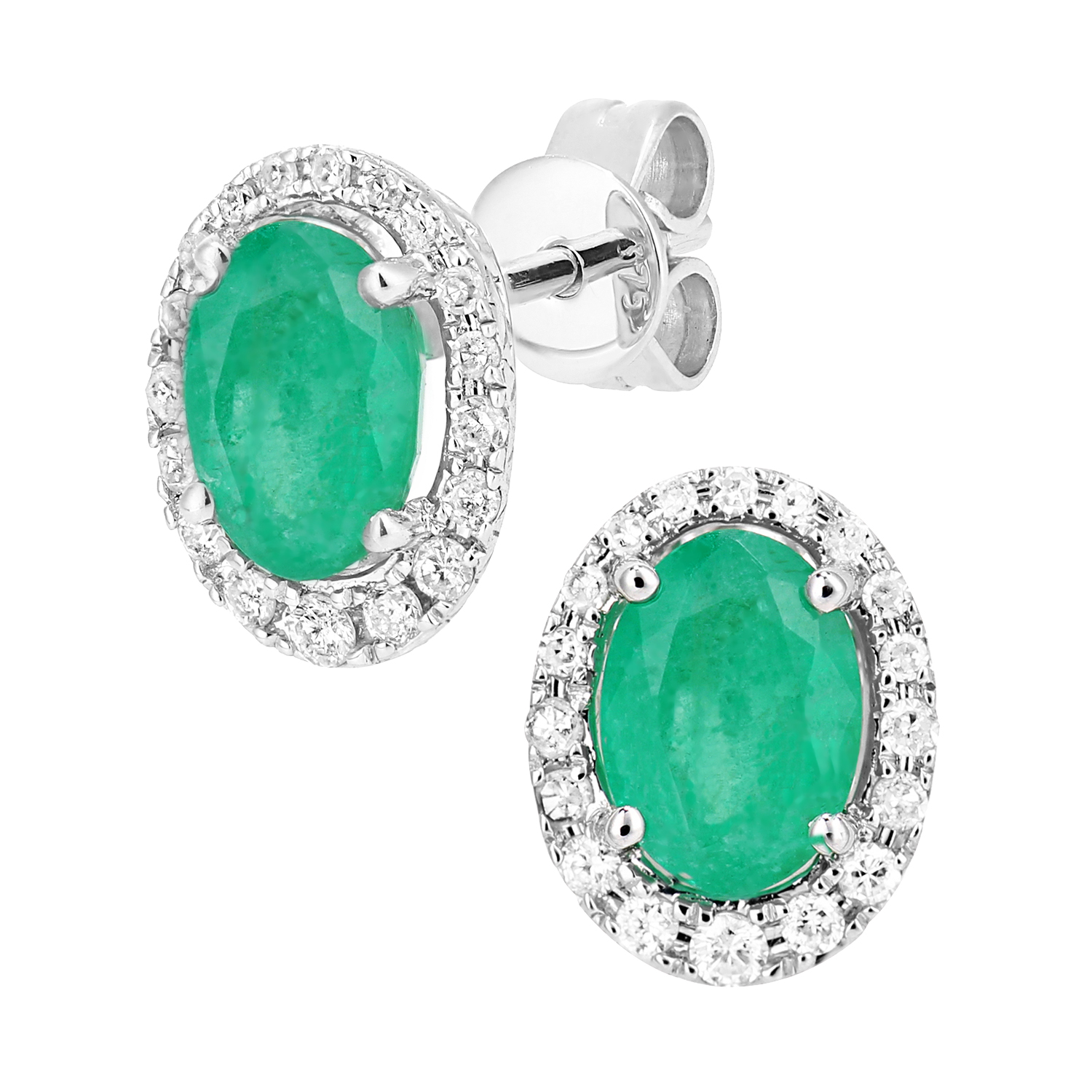 Diamant L'eternel Womens 9ct White Gold Diamond and Emerald Gemstone Oval Cut Stud Earrings - One Size