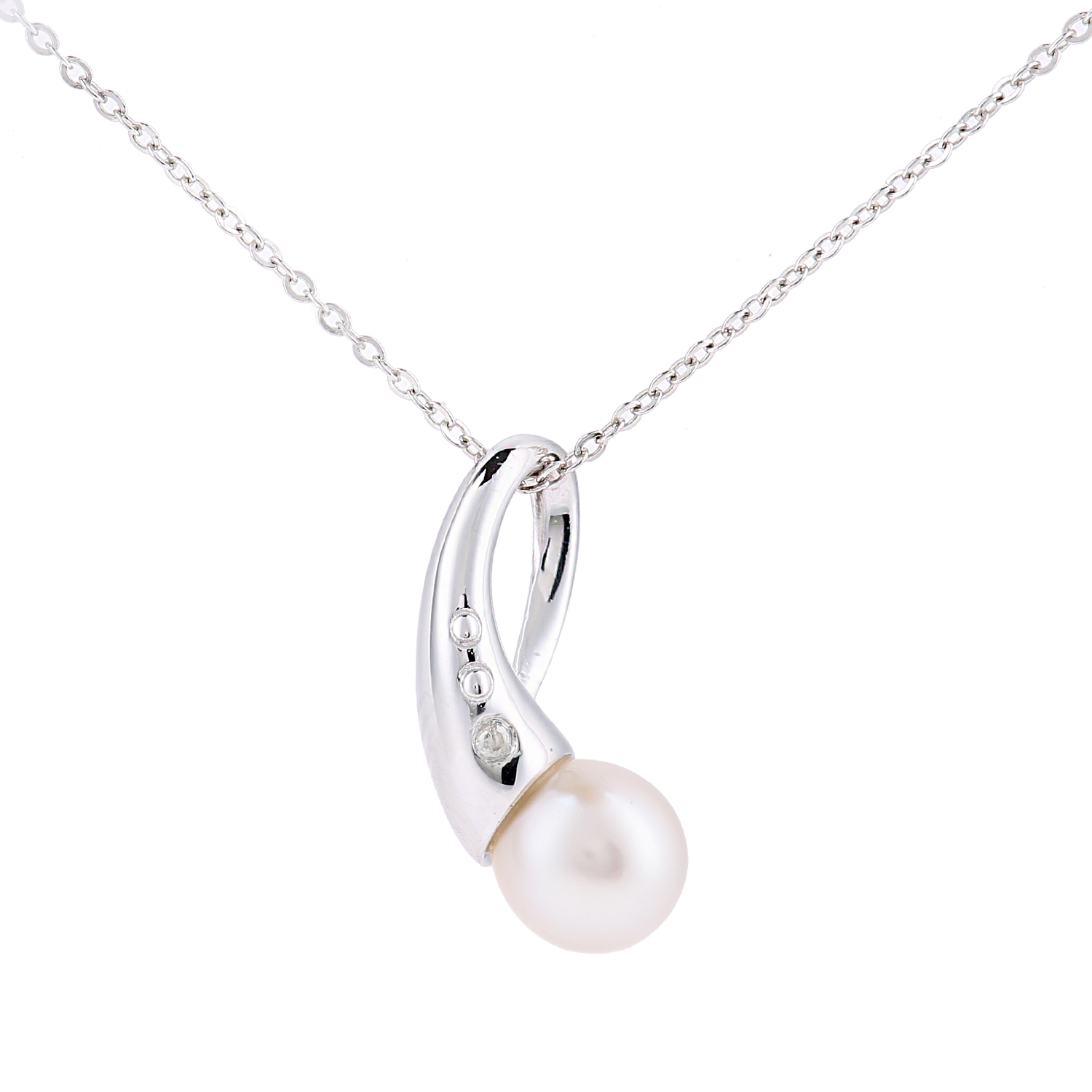 Diamant L'eternel Womens 9ct White Gold, 0.01ct Diamond With Cultured Pearl Pendant - One Size | Diamant L'eternel Sale | Discount Designer Brands