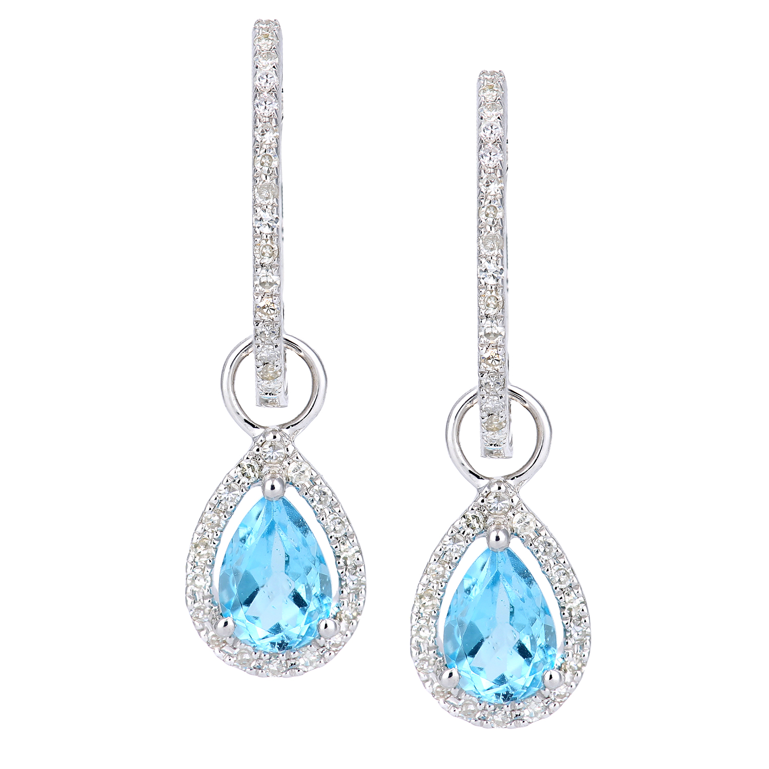 Diamant L'eternel Womens 9ct White Gold Diamond and Blue Topaz Teardrop Hoop Earrings - One Size | Diamant L'eternel Sale | Discount Designer Brands