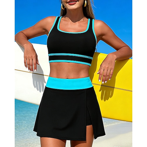 Per donna Tankini 2 pezzi Costumi da bagno Color-blocking Elastico Senza Maniche Costume da Bagno Surf Snorkeling Nuoto Estate