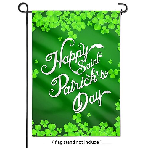 bandiera da giardino con trifoglio per San Patrizio, disegno di folletto, verde Decorazione irlandese dorata, bandiera da giardino per la celebrazione di San Patrizio.