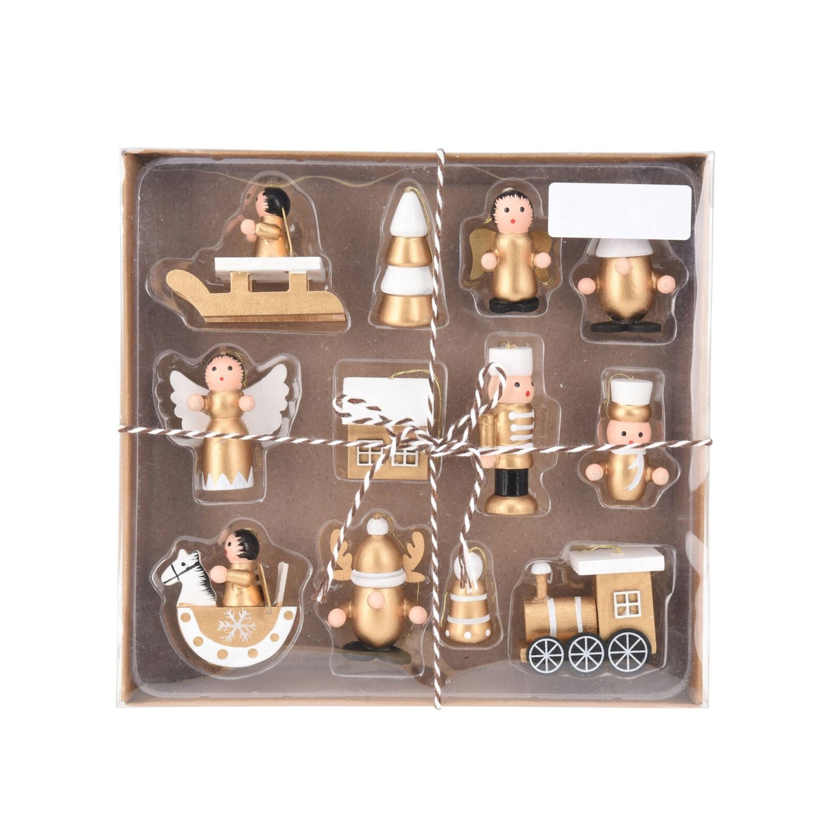 WellHome - 12er-Set Weihnachtsdeko zum Aufhängen aus Holz in Gold und Weiß